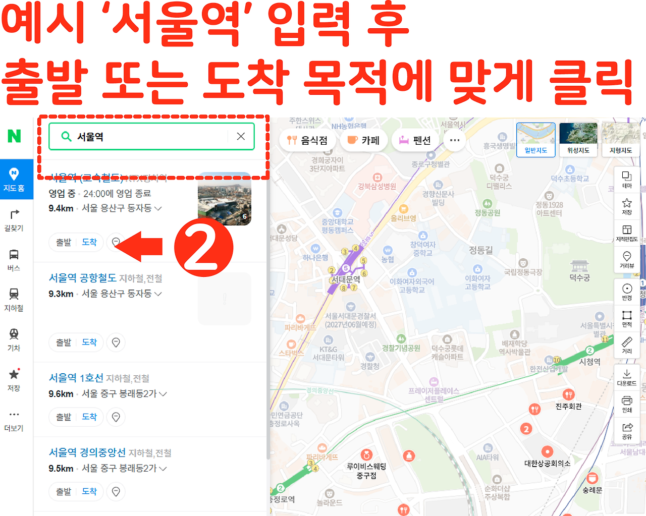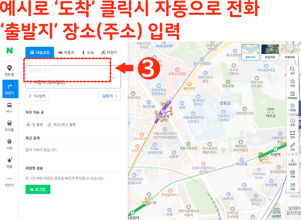 자동차·도보·자전거·대중교통 각각 경로 설정 방법
