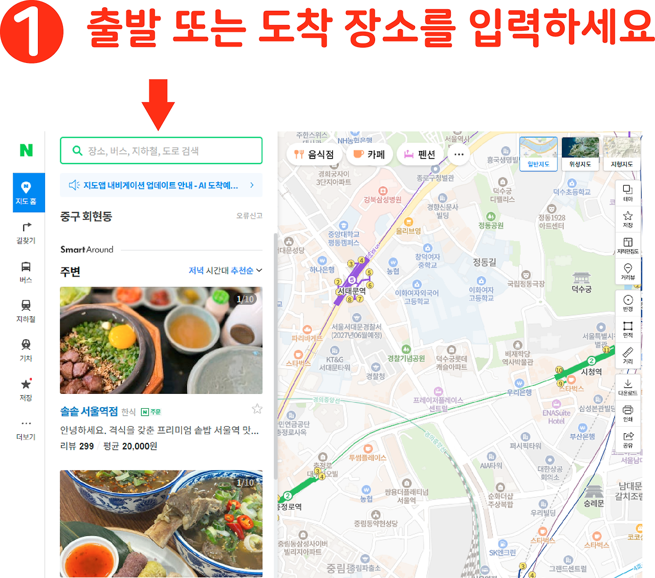 빠른길찾기 기능, 네이버지도 앱에서 바로 쓰는 법
